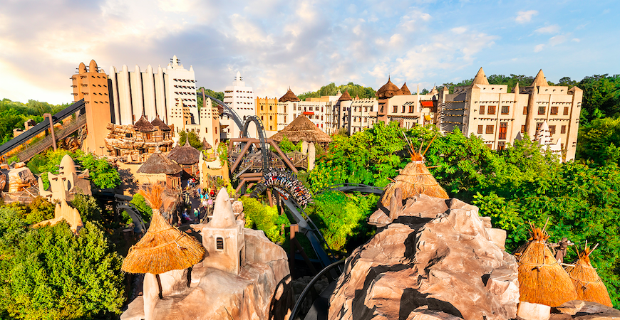 Phantasialand ligt in het Duitse plaatsje Bruhl, vlakbij Keulen. Je waant je in Phantasialand in een compleet andere wereld, of beter gezegd in zeven werelden! Het pretpark is namelijk ingedeeld in zeven themagebieden: Berlijn, China Town, Deep in Africa, Fantasy, Mexico en Mystery. Elk themagebied heeft zijn eigen charme. Op de Berlijnse boulevard zie je bijvoorbeeld een aantal bekende gebouwen uit de Duitse hoofdstad. In het Deep in Africa gedeelte kun je muziek maken op traditionele Afrikaanse trommels of meedoen met Afrikaanse dansers.
